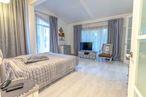 Дом В окружении вековых елей и богатой инфраструктуры, в одном из самых живописных районов Подмосковья. Создан по индивидуальному авторскому проекту с использованием дорогих и экологичных чистых материалов. Панорамное остекление в пол (тройной энергосберегающий стеклопакет) открывает сказочный вид. Приватность и Безопасность при максимальном уровне комфорта и близости всей привычной инфраструктуры делает данное предложение несомненно привлекательным и выгодным. О доме:Новый Дом из клееного бруса 220х270 (размер профиля для северных регионов с очень ветреными и морозными зимами). 2 этажа. Общая площадь 360 м2На первом этаже: Гостиная с двойным светом (высота потолков 5-8 м). Кухня, кабинет, просторная прихожая, гардеробная комната и санузел. Мастер спальня. Панорамное остекление с выходом на отрытую веранду. Терраса. На втором этаже: Спальня с выходом на балкон, Мастер спальня (с ванной комнатой и гардеробной), Ванная комната, Детская. Высота потолков 3-3,20 м.Инженерия: Система отопления: конвектора по уровню пола на длину окна, Трубчатые радиаторы Arbonia (Германия). Система водоочистки, два котла Vaillant ( Германия) с функцией резервирования, бойлер (Италия) на 300 литров, насосная группа (Италия) с разведением на каждого потребителя по воде и отоплению, датчики температуры и протечек, Система Умный дом с управлением отоплением, водоснабжением и т.д. управление смартфоном, предусмотрена возможность подключения газогенератора( обустроен вывод и оформлен Проект), система ZONT для дистанционного управления, высокоскоростной широкополосный интернет и телевидение) Wi-Fi по всему дому и участку, проложен кабель для уличного освещения, четыре точки уличного полива. Дом окрашен американской краской Бенджамин с гарантией 25 лет. Уложена черепица Braas с использованием мембраны американского производства.Коммуникации: Магистральный газ, центральное водоснабжение (в поселке 3 артезианские скважины с системой очистки и подготовки воды), центральная канализация. Об участке:Участок 12 соток. Возможно увеличение до 18 сот. Получено разрешение на присоединение по минимальной кадастровой стоимости.Ландшафт участка спланирован, выровнен, забетонированы дорожки и площадка. По всему участку выполнен дренаж (6 ниток), проведено эл-во для уличного освещения участка. На участке вековые ели. Проведена подготовка ландшафта участка, есть проект, привезены Валуны с Кавказа от 6-10 тонн, органично, вписывающиеся в дизайн, разведено освещение и система полива. О поселке: Камерный поселок в английском стиле на 70 домовладений, АкваФорест Расположение: Коттеджный поселок в 38 км от МКАД в экологически чистомрайоне севера Подмосковья. Поселок АкваФорест обладает удобной транспортной доступностью и для автомашин (асфальтовый подъезд до территории поселка и скоростная трасса), и для общественного транспорта, до железнодорожной станции можно дойти пешком за 15 минут.Безопасность: Территория огорожена по периметру и круглосуточно охраняется