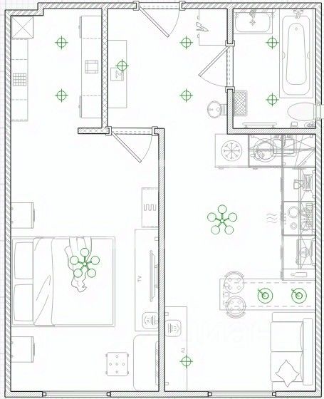 Квартира расположена на втором этаже 17-этажного кирпично-монолитного дома 2021 года постройки. Общая площадь квартиры составляет 43 квадратных метра, из которых 18 метров приходится на жилую площадь и 14 метров — на кухню. Высота потолков — 2,85 метра. В квартире сделан евроремонт.