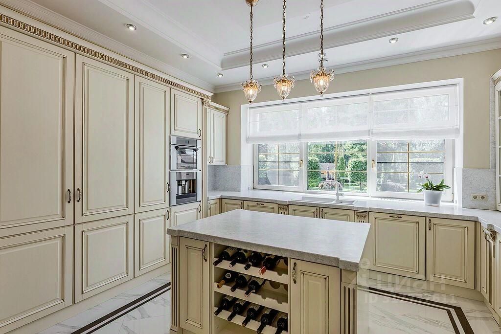 Внутренняя отделка выполнена с применением натуральных материалов (натуральное дерево, камень), установлена премиальная техника, мебель изготовлена на заказ специально для проекта. Встроенная техника De Dietrich, сантехника Villeroy & Boch, есть дополнительный электрогенератор на случай отключения электричества
