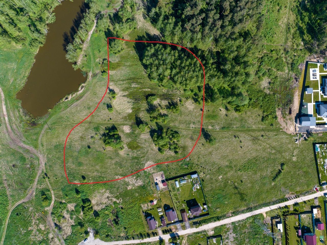 Часть участка граничит с лесом и озером, часть участка на поле. Участки находятся на окраине деревни с минимальным автомобильным трафиком. В деревне есть проезжая бетонная дорога.