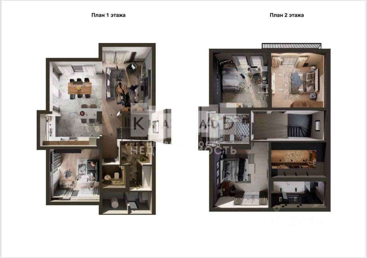 Продуманная планировка: На первом этаже разместились: гардеробная, светлая и просторная кухня-гостиная с выходом на террасу, кабинет (спальня) , санузел, котельная постирочная. Второй этаж вместил в себя три спальни, одна из которых со своей ванной комнатой и гардеробной, санузел.