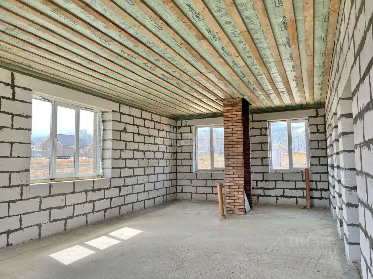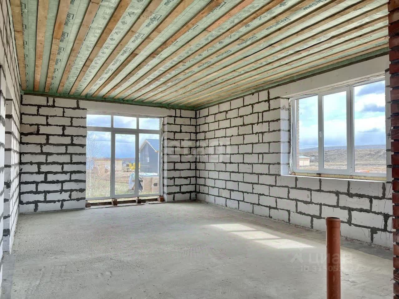 Дом без внутренней отделки, есть проект по зонированию комнат, можно реализовать свою планировку.