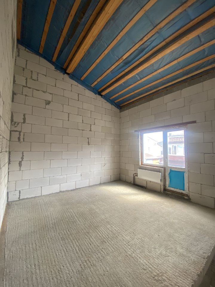 Таунхаус без отделки: отопление в доме висят радиаторы, водоснабжение, электричество и канализация заведены. На втором этаже высокие потолки, есть возможность оборудовать дополнительную комнату, мансарду.
