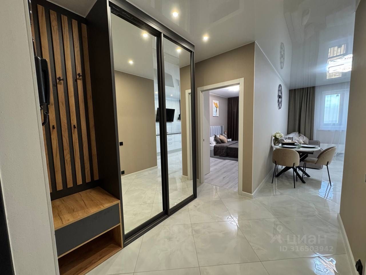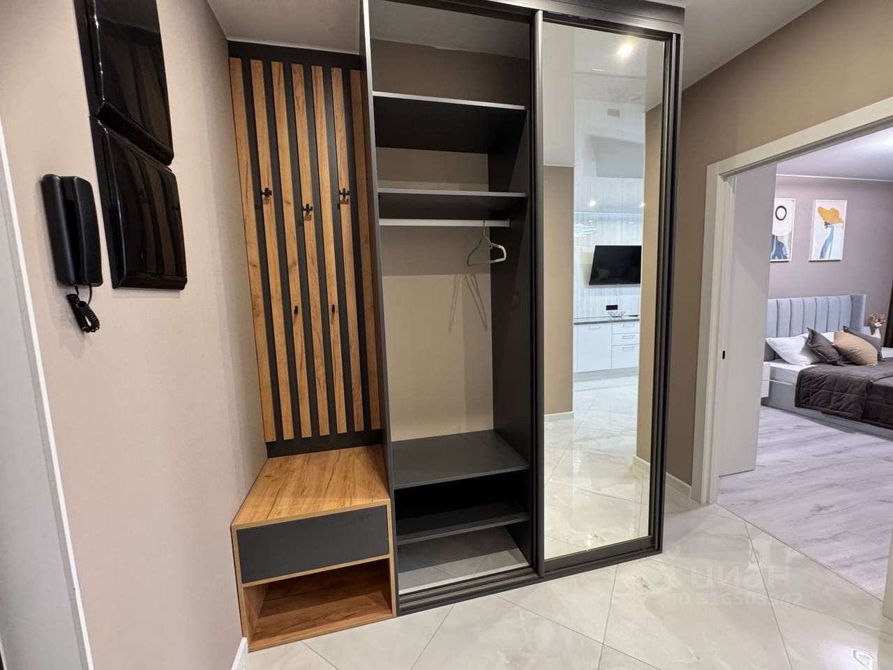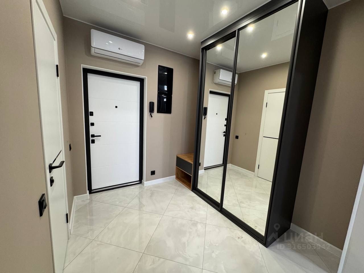 Новые шкафы - купе, встроенная кухня и техника( индукционная плита, вытяжка, посудомоечная машина , кондиционер, телевизор, встроенный холодильник).