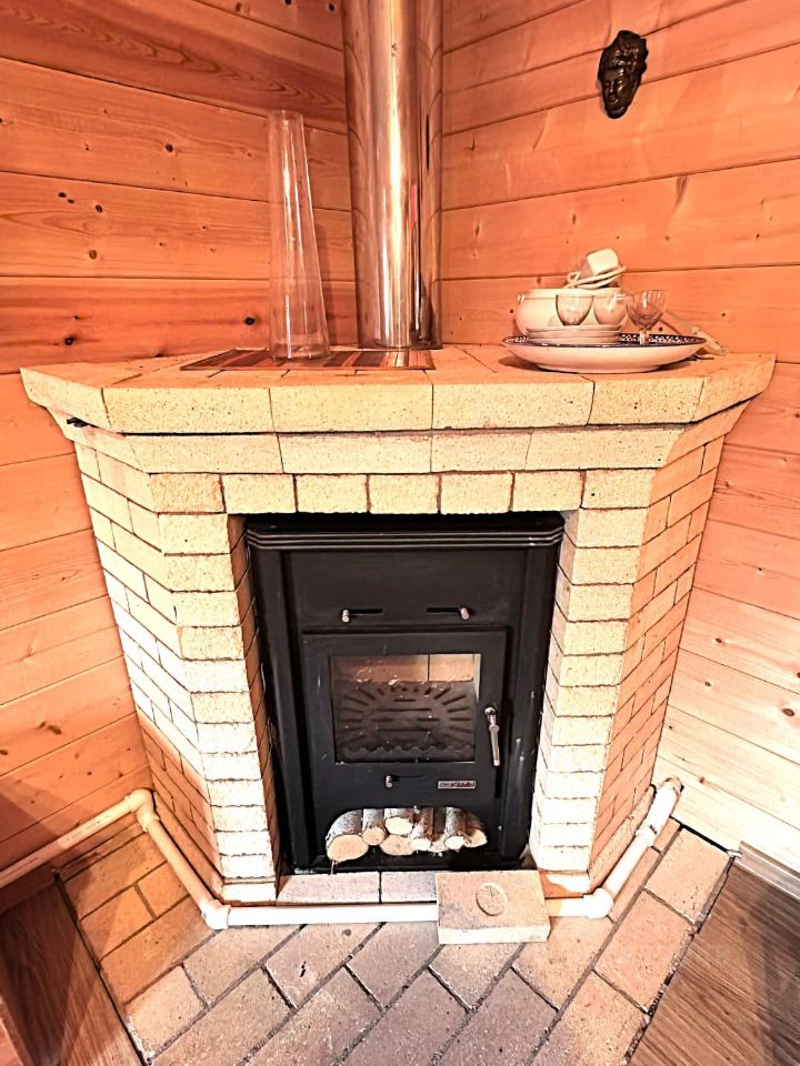 Второй дом из бруса, облицован сайдингом, цоколь облицован керамогранитом. один санузел, четыре спальни, гостиная, функциональная мансарда, камин и печь.