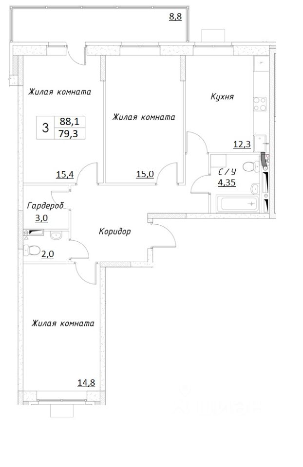 Продается полностью готовая 3-комн. квартира площадью 88,1 кв.м. (79,3 кв.м. без учета балкона) в новом доме ЖК Шоколад. Просторная кухня 12,3 кв.м., Квартира светлая, в теплых тонах, вид из окон во двор и на улицу. Балкон застеклен, площадью 8,8 кв.м. Квартира передается с полной отделкой под ключ. Подъезды в ЖК — без барьерная среда — удобная и безопасная для детей и взрослых, пожилых и малоподвижных людей, т.к. входы во всех подъездах располагаются на уровне земли, без ступеней и других препятствий. Во входных группах предусмотрены зоны для хранения колясок и место для консьержа, так же в каждом подъезде два лифта - грузовой и пассажирский. Подъезды сквозные: можно быстро выйти из дома и во двор, и на улицу.