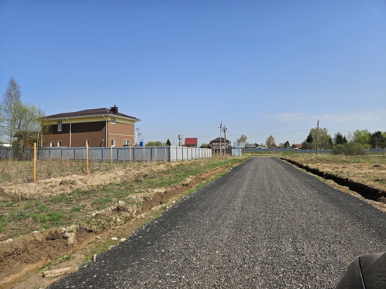 На выходе из поселка автобусная остановка.