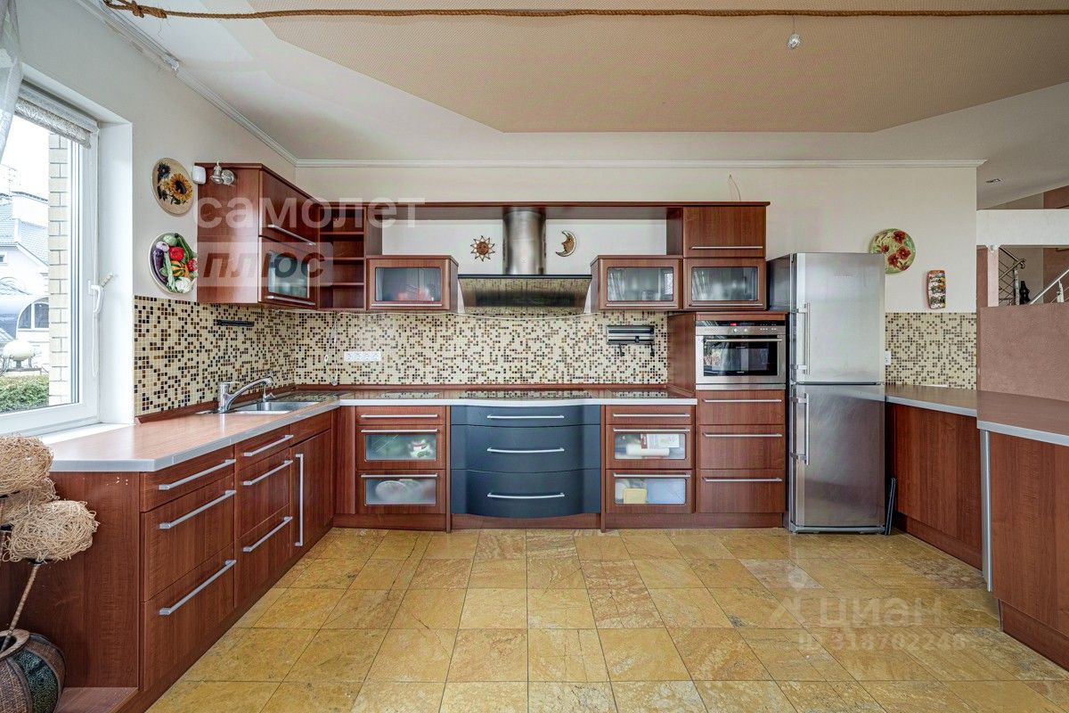 Вы можете войти в дом через парадный вход или из удобного гаража на два автомобиля, но в любом случае Вы пройдете через отделенное, для сохранения тепла, двумя дверями помещение лестницы или прихожей. В холле расположен гостевой санузел и постирочная, лестница на второй и цокольный этажи. Первый этаж - зона совместных трапез и семейного отдыха. Просторная обеденная зона рядом с кухней, светлая гостиная с окнами на юг и восток со вторым светом и выходом на террасу (патио), создают атмосферу уюта и тепла. Кухня производства Германии оборудована качественной бытовой техникой. На первом этаже так же расположена спальная комната с индивидуальной ванной комнатой и гардеробной. Поднявшись по удобной лестнице на второй этаж, вашему вниманию откроются: большая мастер-спальня и еще две комнаты, одна из которых оборудована как кабинет. Каждая из трех комнат примыкает к индивидуальной ванной комнате и гардеробной комнате, что создает комфорт для каждого члена семьи. Цокольный этаж состоит из нескольких пространств: зона отдыха рядом с просторной второй кухней, так же оборудованной бытовой техникой и винным шкафом, зал с бильярдом, банное пространство (ванная комната, джакузи и баня Маслова, с облицовкой из травертина), спортивный зал, еще одна гардеробная комната и два технических помещения (отопление, водоснабжение, очистка воздуха от пыли, электричество, централизованная аудиосистема). Просторный гараж на два автомобиля, с автоматическими воротами. Техническое помещение с тихим, но мощным генератором для автономного резервного энергоснабжения. Коммуникации: электричество 15 кВт, магистральные газ и канализация, питьевая вода из собственной скважины. Отопление дома очень экономичное, теплым воздухом. Благодаря этому плюсу стоимость обогрева (газ), в среднем, всего 3000 рублей в месяц. Система кондиционирования, отопления воздухом и система очистки воздуха (да-да, в доме чисто, нет пыли!), с вынесенными на участок блоками кондиционеров. Интернет оптическое волокно, вы можете без проблем работать из дома. Приятным бонусом - централизованная аудиосистема с трансляцией по всему дому и на участок.