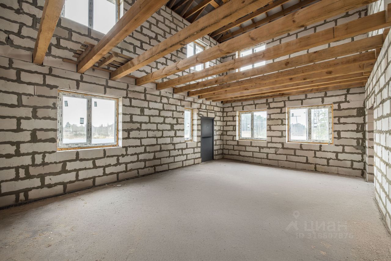Продается дом под отделку 2020 г. постройки. Высокое качество строительства и строительных материалов. Газобетон, утеплен и оштукатурен, крыша металлочерепица, окна - ламинированные ст/пакеты. Площадь дома по двум этажам 240 м2, плюс цокольный этаж. Участок правильной формы, выровнен, частично огорожен. Возможно увеличить участок до 17 соток, и получить свой выход в лес. Поэтажный план по проекту: Цоколь: котельная, хозяйственные помещения, 1 этаж: прихожая, гостиная с кухней, спальня, санузел, кладовая. Можно оборудовать котельную на первом этаже, 2 этаж: три спальни, холл с окном, санузел, гардеробная. Электричество заведено в дом. Остальные центральные коммуникации по границе участка - магистральный газ, водопровод, канализация.
