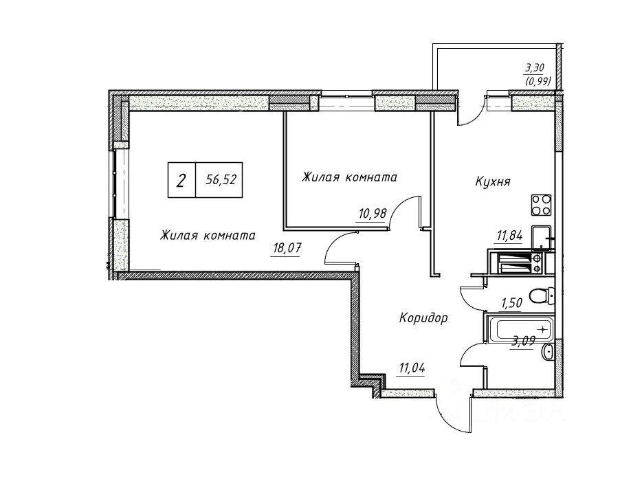 Продается 2-к квартира общей площадью 57,42 кв.м., находящаяся в новом доме комфорт-класса по адресу: Московская область, г. Дмитров, Оборонная улица, 32