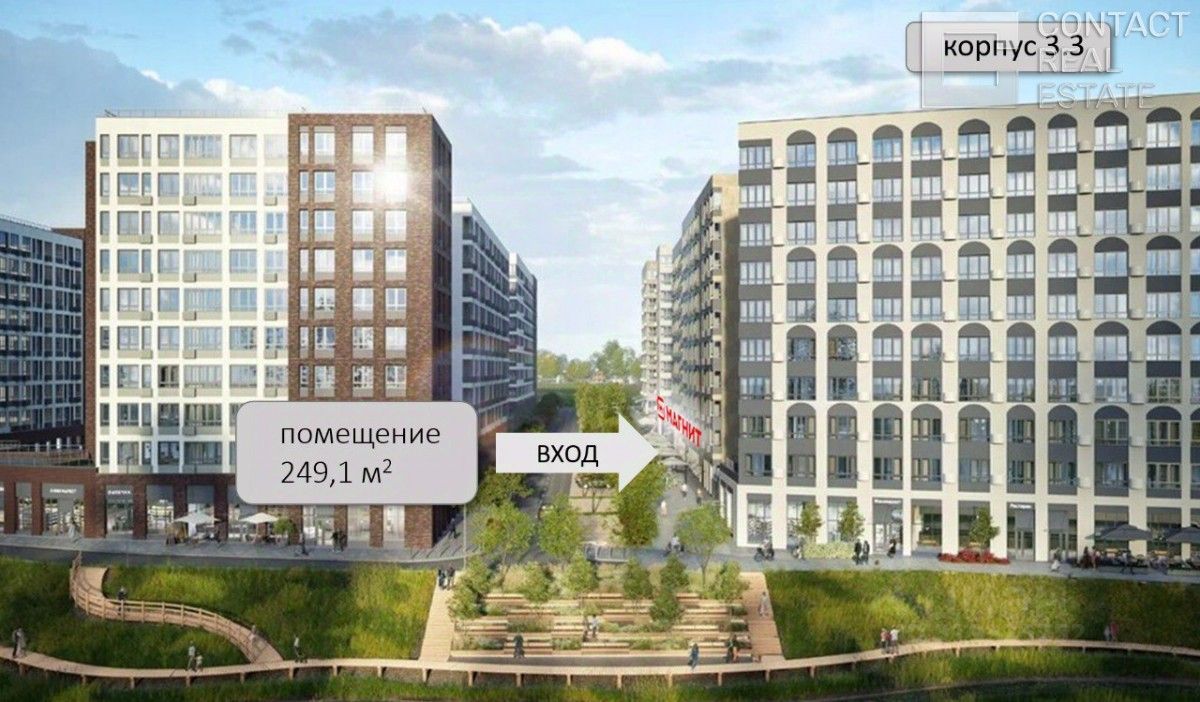 Помещение площадью 249,1 кв.м, находится на первой линии домов, в ЖК ''Родные кварталы'', интенсивный пешеходный и автомобильный трафик вдоль помещения.