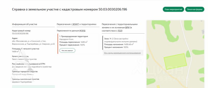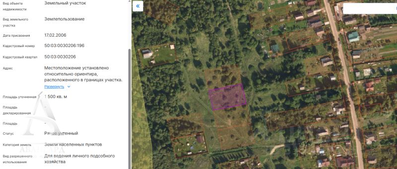 кадастровый номер: 50:03:0030206:196