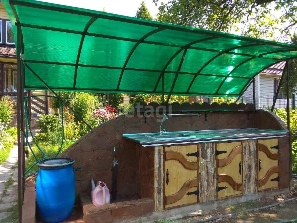 Территория участка утопает в зелени и цветах. Здесь вы найдете теплицу, идеальную для выращивания любимых овощей и зелени, а также летнюю кухню, где можно наслаждаться свежими блюдами на природе.