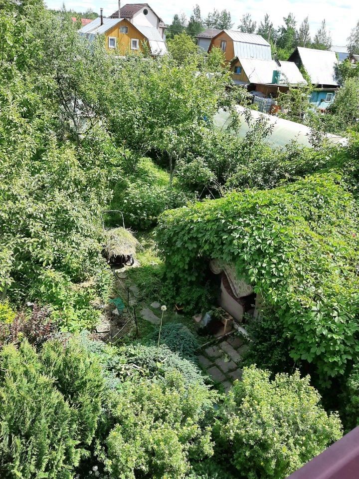 Плодовые деревья, кустарники, хозблок на участке, машиноместо.