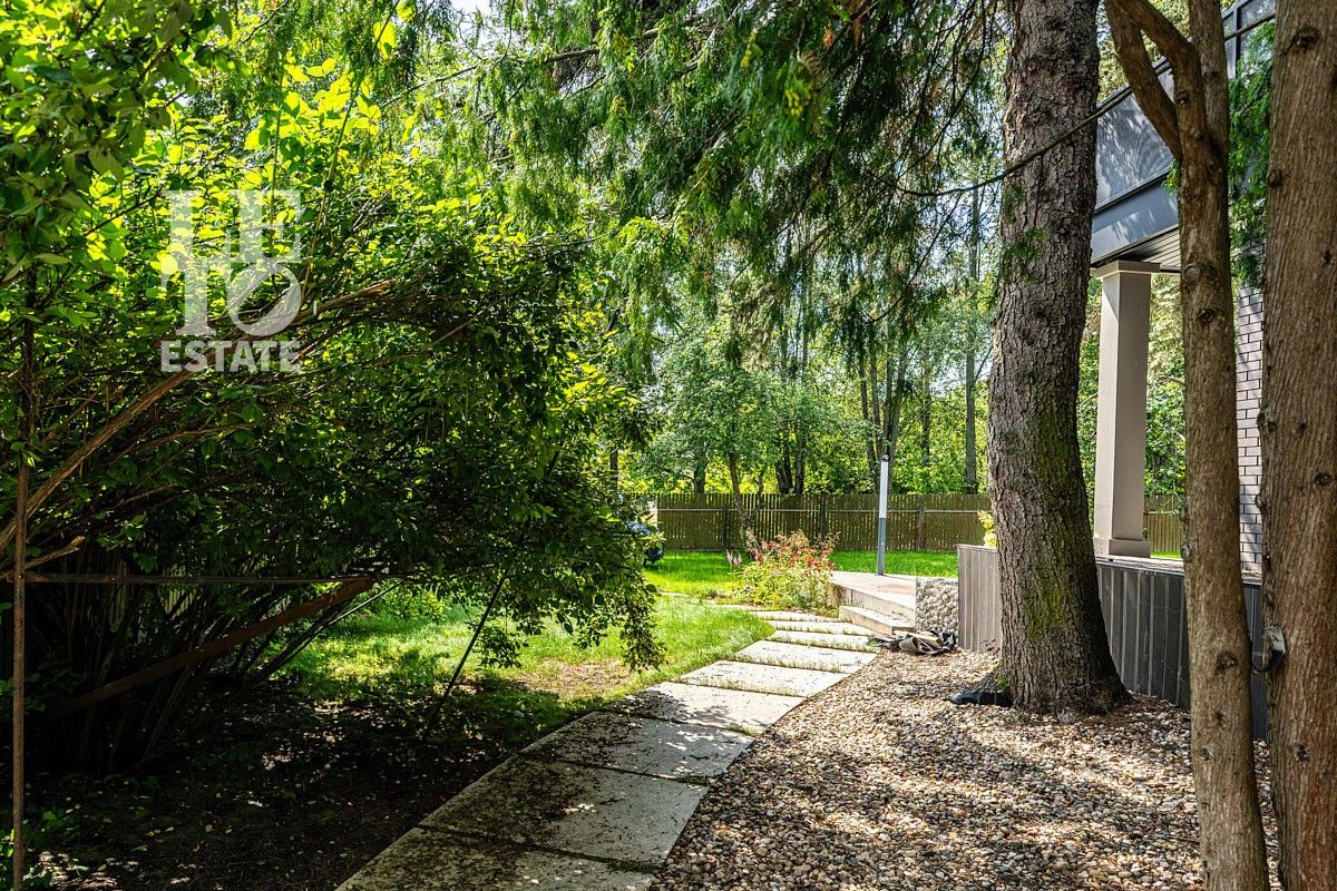 Дом расположен на ухоженном зелёном участке площадью 11.97 соток. Территория огорожена по всему периметру и находится в уединённой части посёлка. На участке уже высажены яблони, хвойные деревья, такие как сосны, можжевельник и туи, а также декоративные кустарники, жасмин, сирень и яркие цветочные клумбы. Для отдыха на свежем воздухе в любую погоду оборудована крытая BBQ-зона. Также на участке есть отдельный хозяйственный блок для хранения инвентаря.