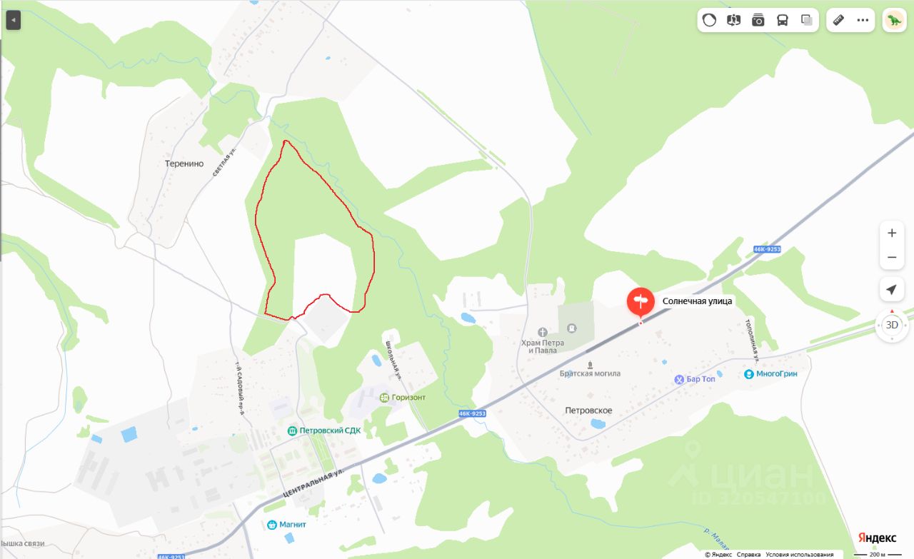 Предлагается к продаже земельный участок площадью 17, 5 гектар. Участок представляет из себя ровное поле, без оврагов. Вид разрешенного использования: для выращивания сельскохозяйственных культур. Участок расположен вблизи деревни Теренино. Граница участка проходит вдоль реки Малая Сестра. 19 км от г. Клин. 95 км от МКАД по Ленинградскому шоссе. Один собственник. Быстрый выход на сделку.