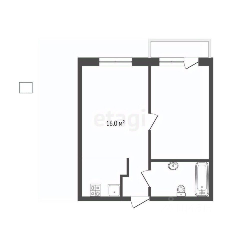 Планировка: просторная кухня-гостиная, уютная изолированная комната с выходом на балкон, совмещенный санузел.