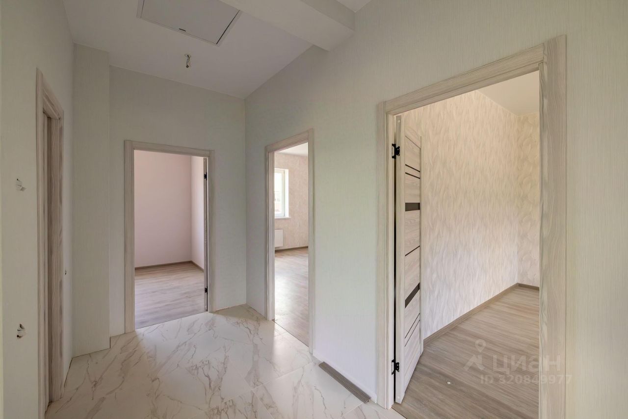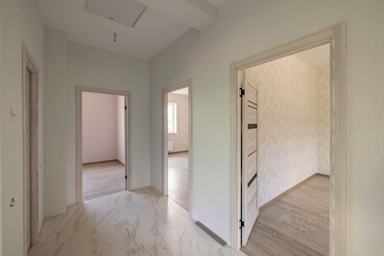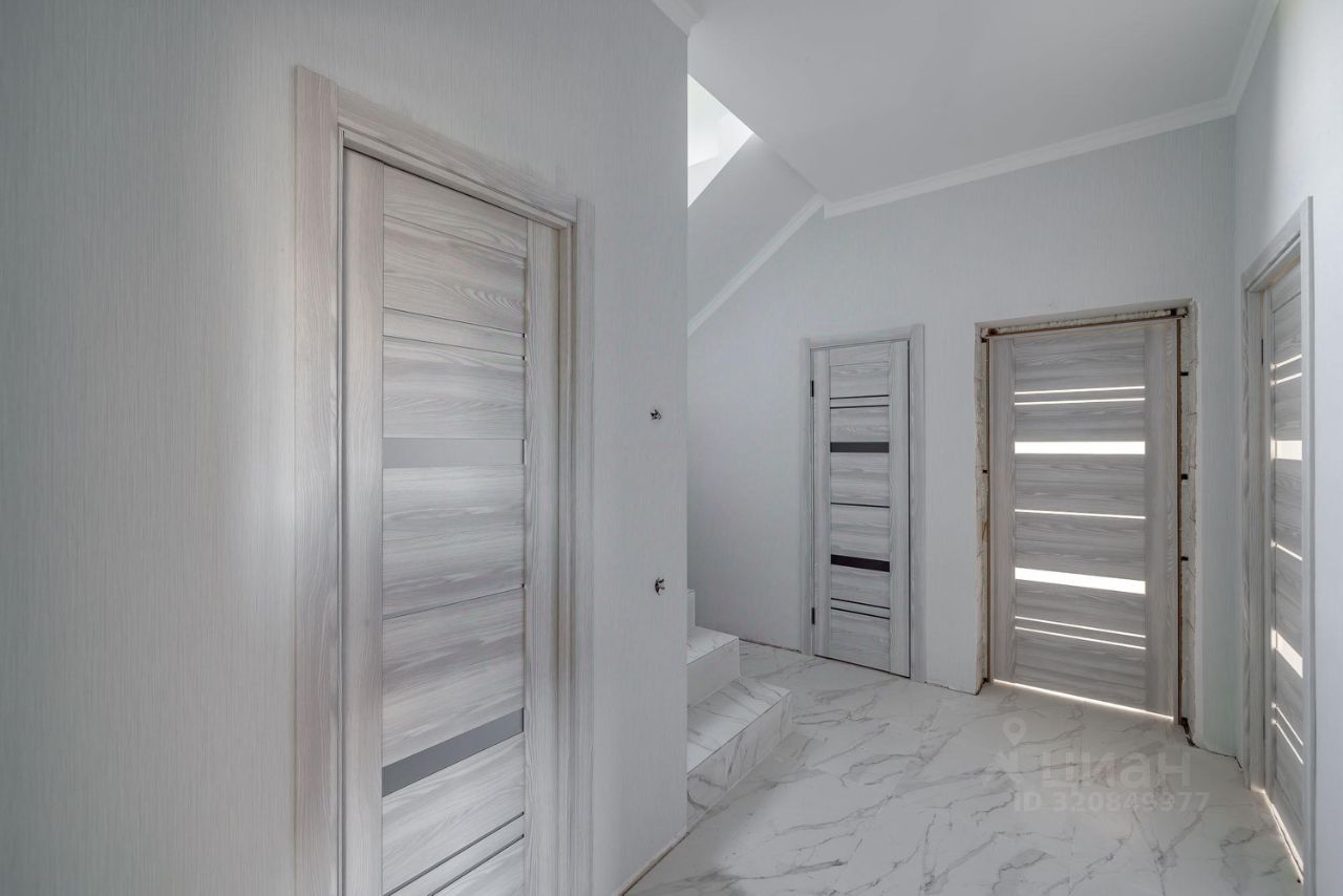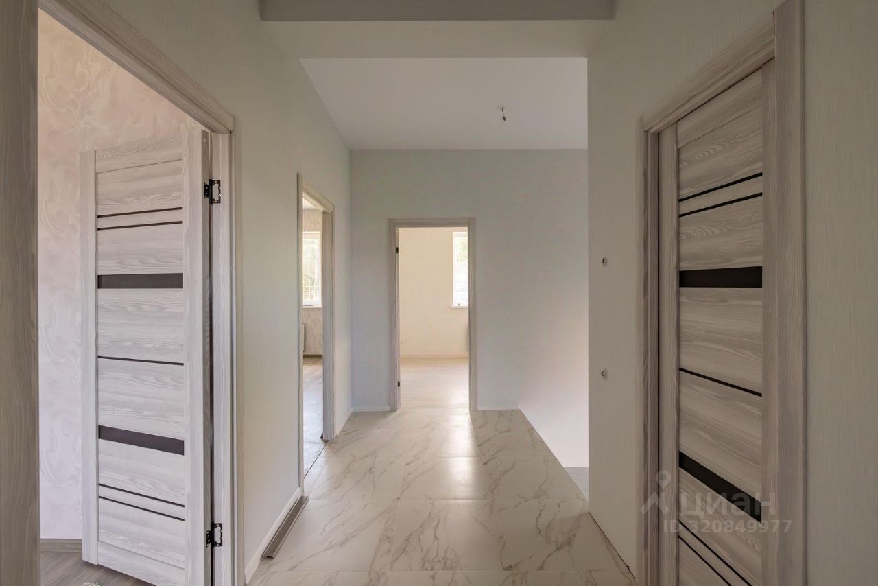 Продается новый двухэтажный дом под ключ. Современный проект, высокие потолки, большое остекление, много воздуха и пространства. Блок, утеплен и оштукатурен, фасад отделан термопанелями. Крыша металлочерепица. Окна пластиковые ст/пакеты. Водяные теплые полы. Участок правильной формы, выровнен, огорожен, выполнена въездная группа с распашными воротами.. Поэтажный план: 1 этаж: прихожая, гостиная с кухней, спальня, санузел с ванной, бойлерная. Просторная терраса. 2 этаж: четыре спальни, санузел с душем. Коммуникации: Электричество - 15 кВт, Магистральный газ, Центральный водопровод, Центральная канализация. Круглогодичный подъезд. Молодой, динамично застраивающийся поселок. Соседи проживают постоянно.