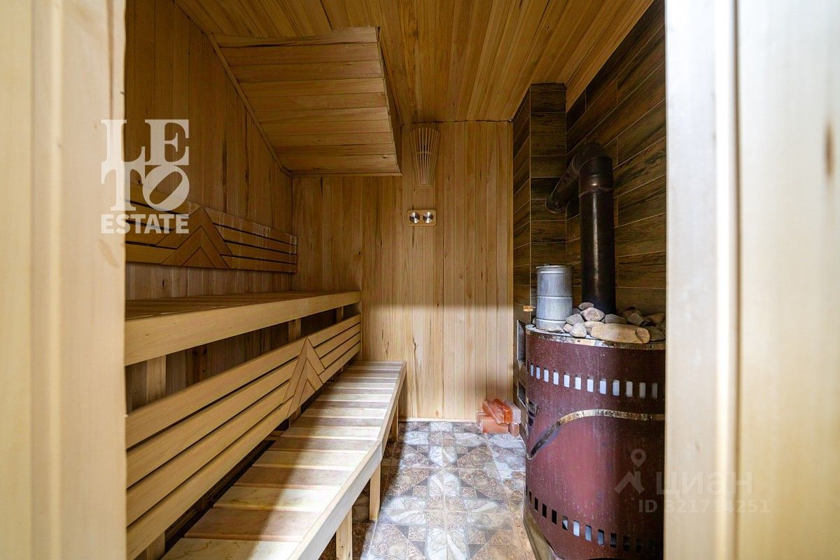 Земельный участок площадью 25.42 сотки грамотно распланирован - в отдаленной его части расположилась отдельно стоящая баня с возможностью размещения гостей на втором этаже. Также на участке предусмотрен гараж на 2 автомобиля. В центре участка организован декоративный пруд. Примыкание земельного участка к лесу дает возможность оформить в аренду лесную часть, тем самым увеличив площадь земли.