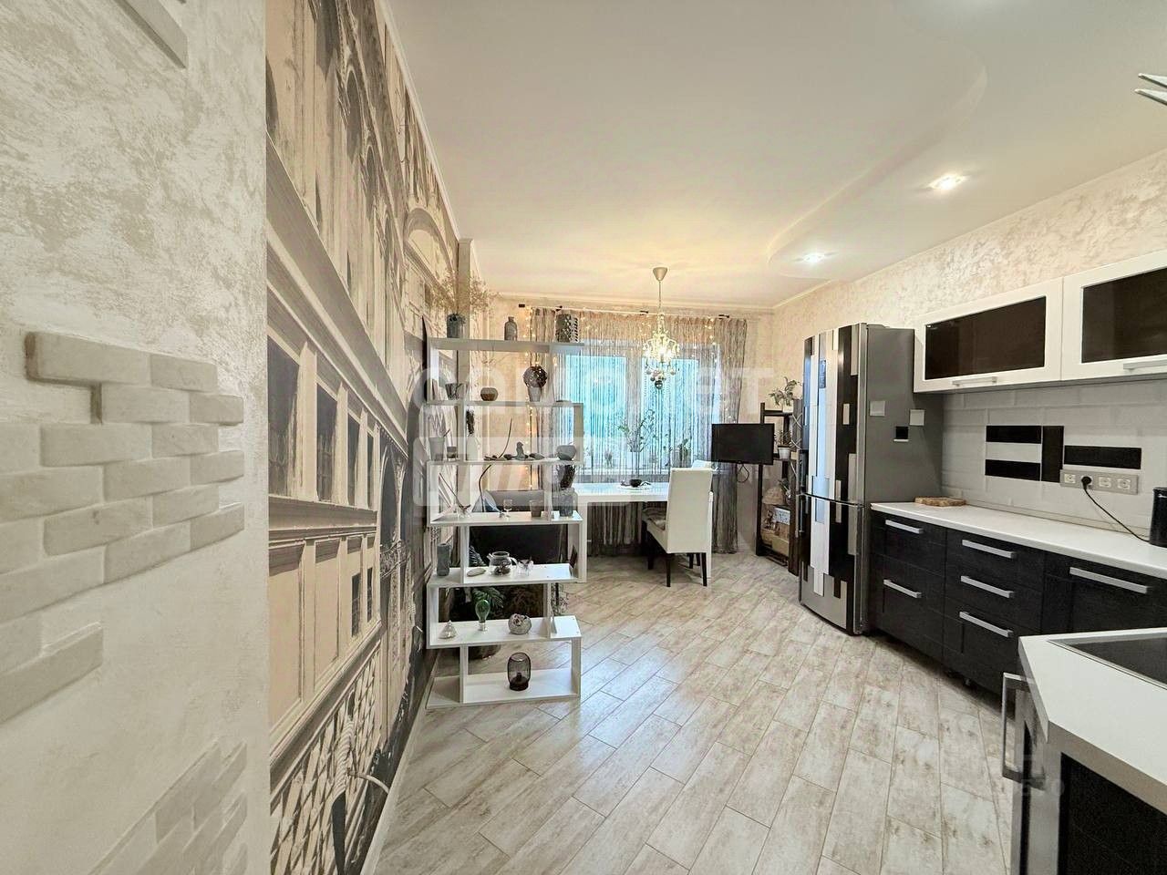 Эксклюзивный дизайнерский ремонт в приятных светлых тонах с использованием только качественных и дорогих материалов: изысканной декоративной штукатурки и стильного керамогранита. Мебель и техника остается.