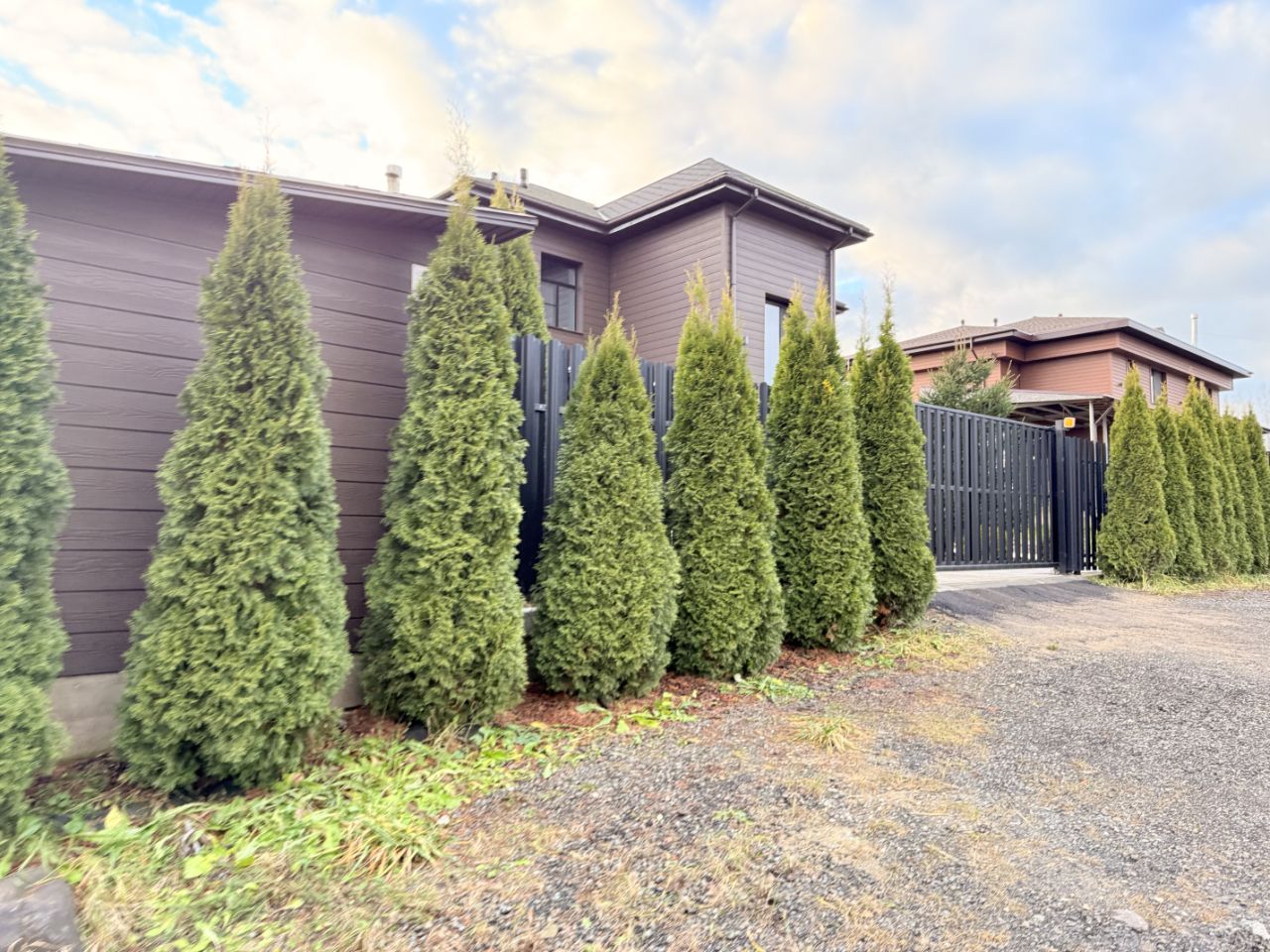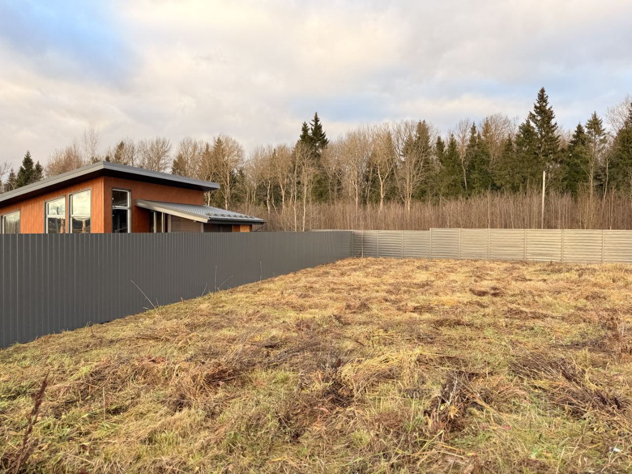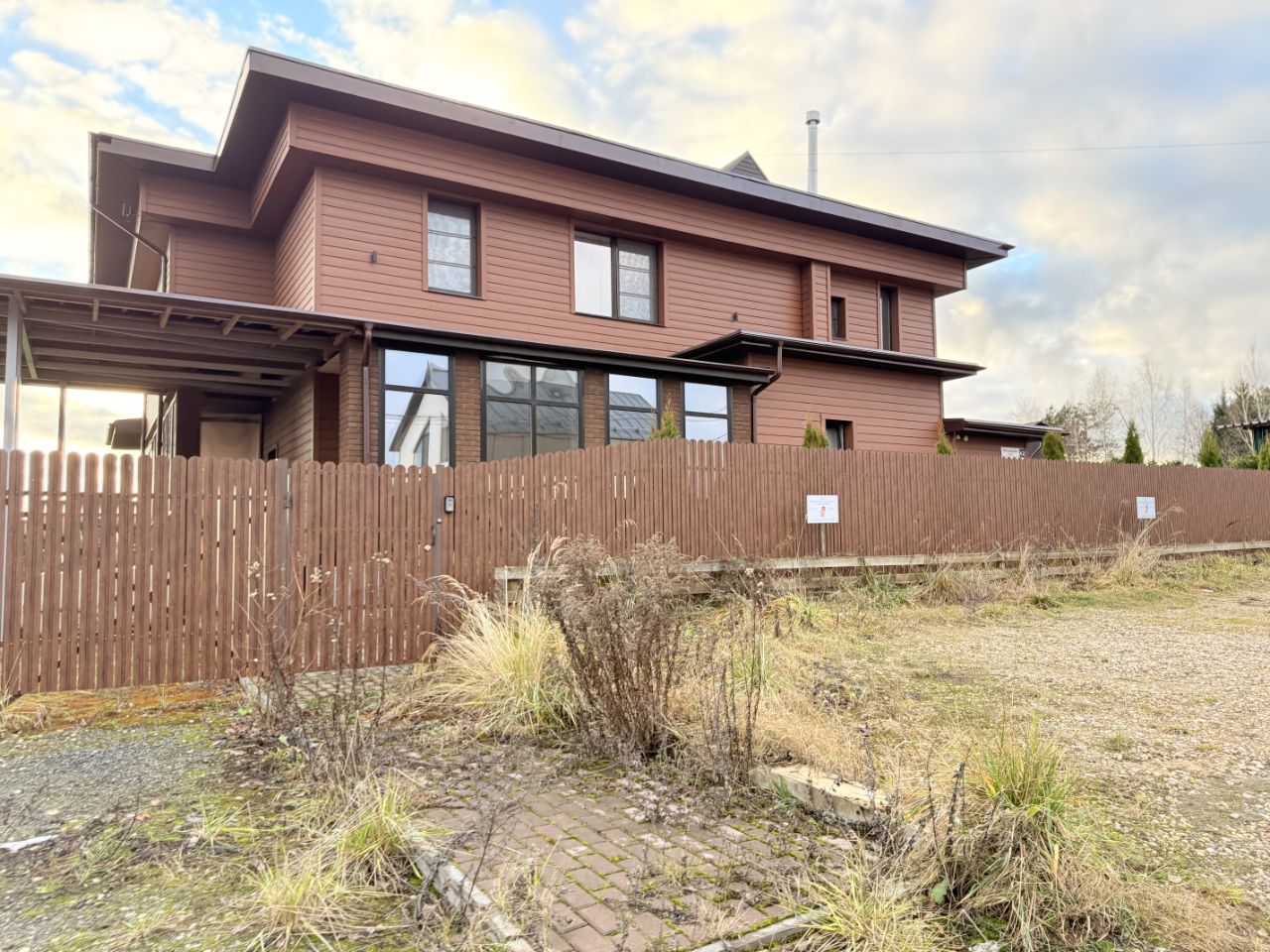 Огороженная территория. Единый стиль лицевых заборов.