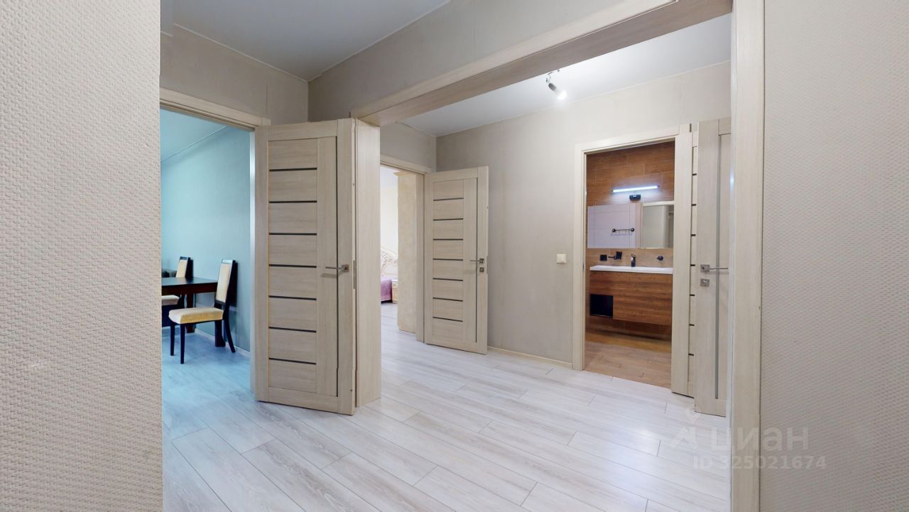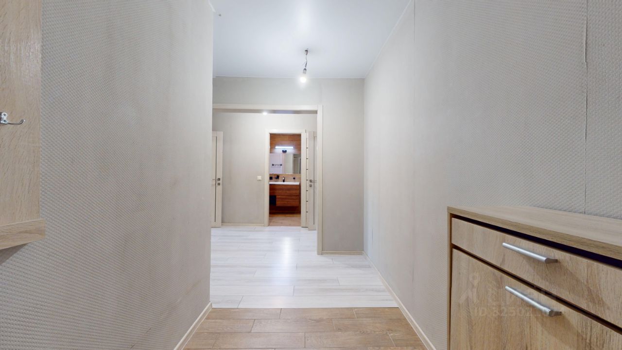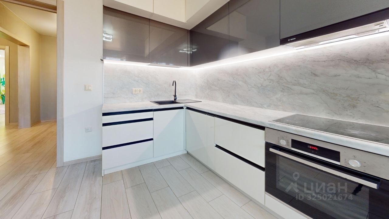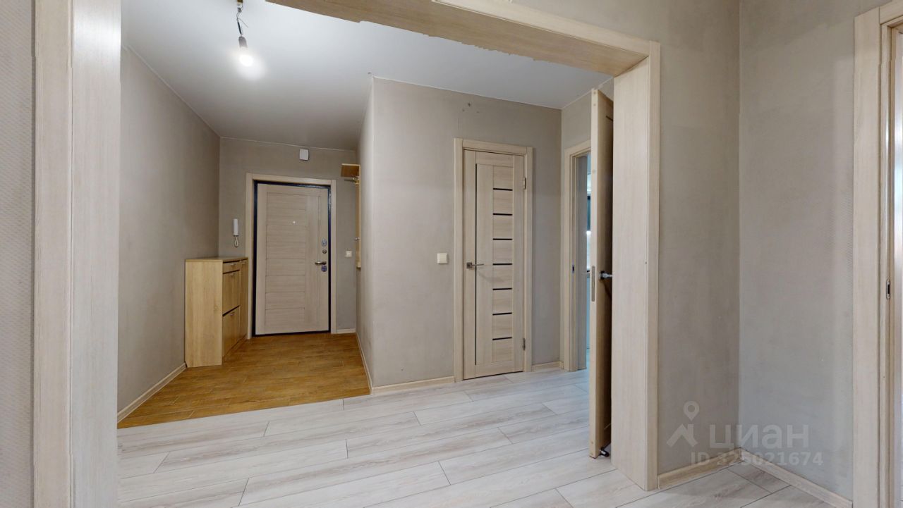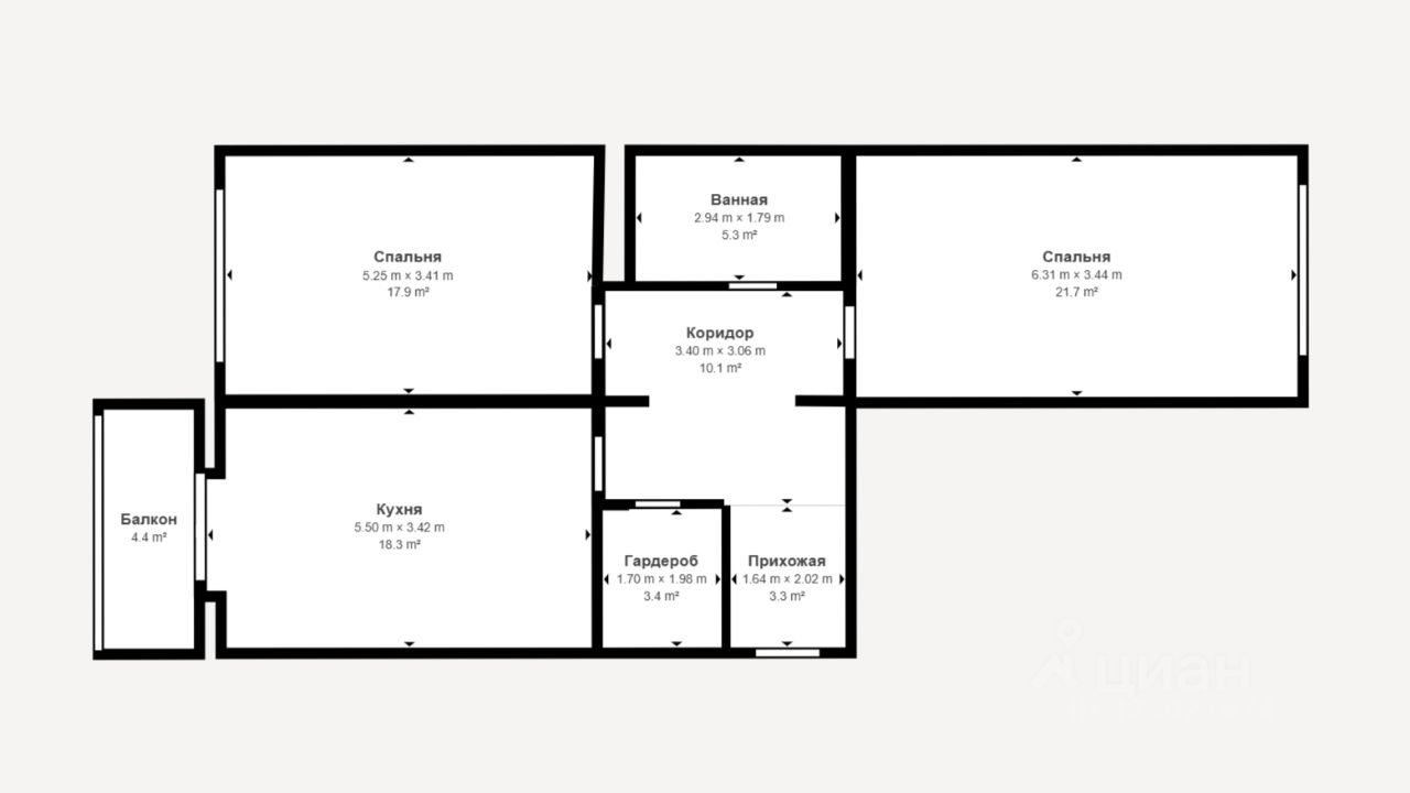 Общая площадь 84, кв.м., 2 изолированные комнаты 21,7 кв.и. и 17,9 кв.м., просторная кухня 18,3 кв.м., большая лоджия 4,4 кв.м., совмещенный с/у, в коридоре обустроена гардеробная комната, на кухне тёплый пол в зоне плитки.