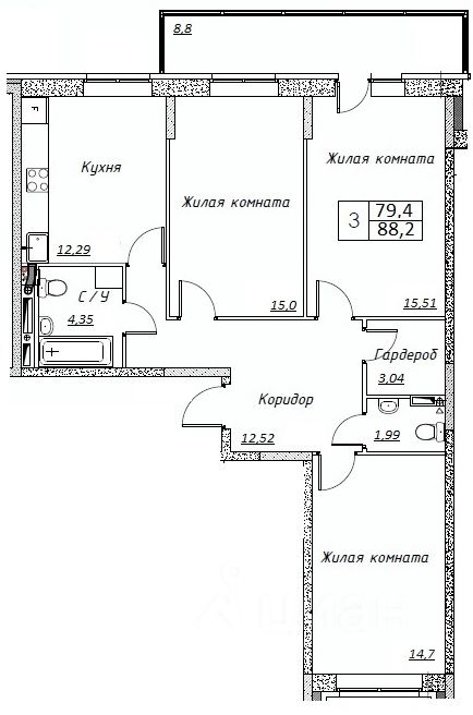 Продается полностью готовая 3-комн. квартира площадью 88,2 кв.м. (79,4 кв.м. без учета лоджии) в новом доме ЖК Шоколад. Просторная кухня 12,29 кв.м., Квартира светлая, в теплых тонах, вид из окон во двор и на улицу. Балкон застеклен, площадью 8.8 кв.м. Квартира передается с полной отделкой под ключ. Подъезды в ЖК — без барьерная среда — удобная и безопасная для детей и взрослых, пожилых и малоподвижных людей, т.к. входы во всех подъездах располагаются на уровне земли, без ступеней и других препятствий. Во входных группах предусмотрены зоны для хранения колясок и место для консьержа, так же в каждом подъезде два лифта - грузовой и пассажирский. Подъезды сквозные: можно быстро выйти из дома и во двор, и на улицу.