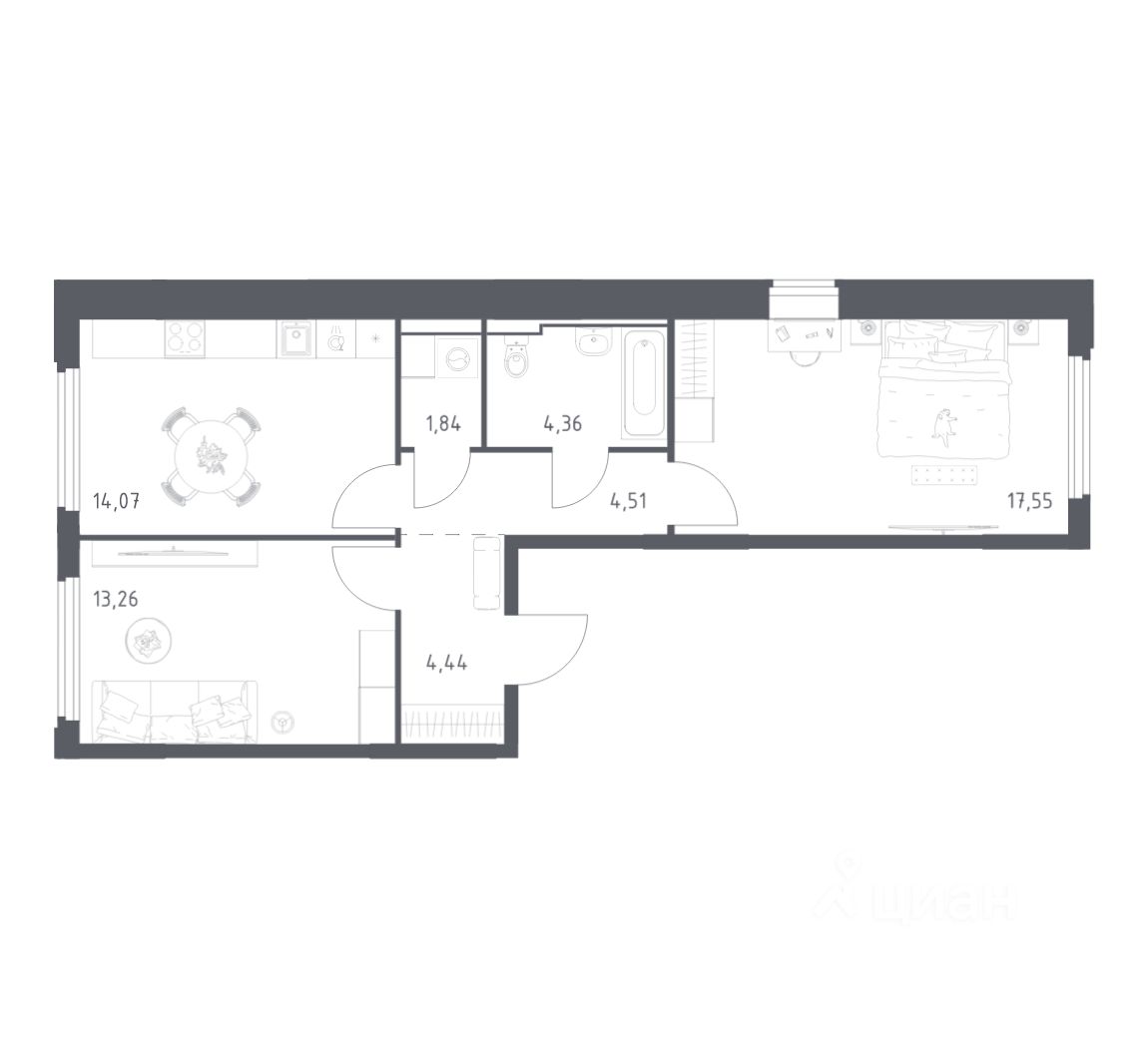 Строим кварталы для жизни с заботой о будущем. Предлагается 2-комнатная квартира комфорт-класса площадью 60,03 кв.м в корпусе 1 на 14-м этаже, в жилом комплексе ''Космический Квартал''.