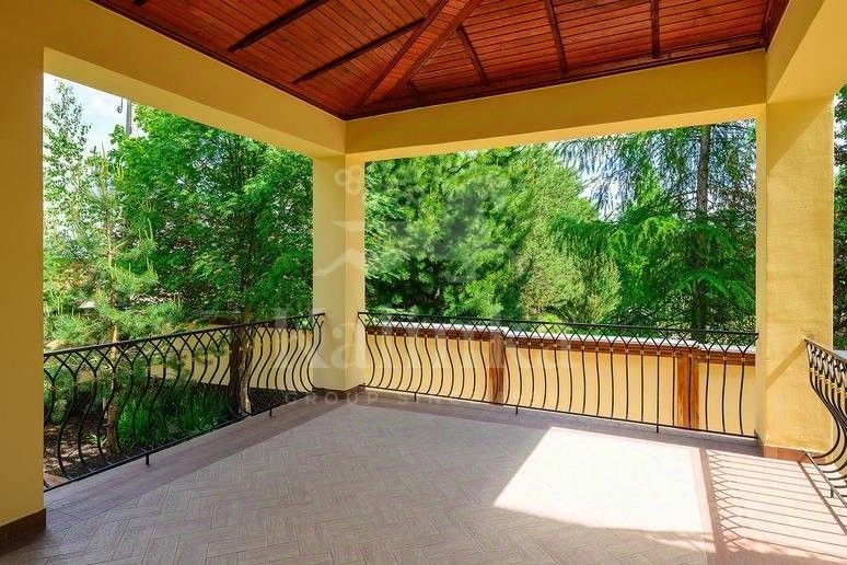 Дом представляет собой капитальное строение (монолит-кирпич) с толщиной наружных стен 60 см и высотой потолков от 3,5 до 5 м. В доме 4 уровня - три этажа и цокольное помещение. В доме 6 спален, 2 кабинета, гостиная с камином, 2 кухни (из одной- выход на террасу), столовая, библиотека с домашним кинозалом и камином, зимний сад, бассейн 12,5 м с сауной и отдельным выходом во двор, бильярдная, тренажерный зал, мастерская, бойлерная, 5 санузлов, 5 душевых кабин, помещения для хранения вещей и продуктов. А также 4 балкона и 2 террасы.