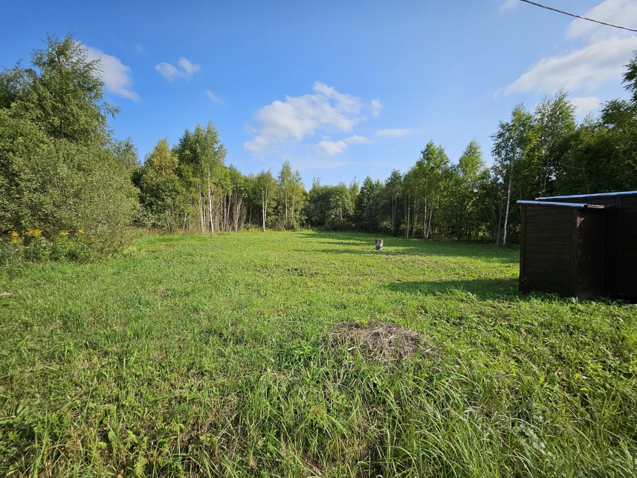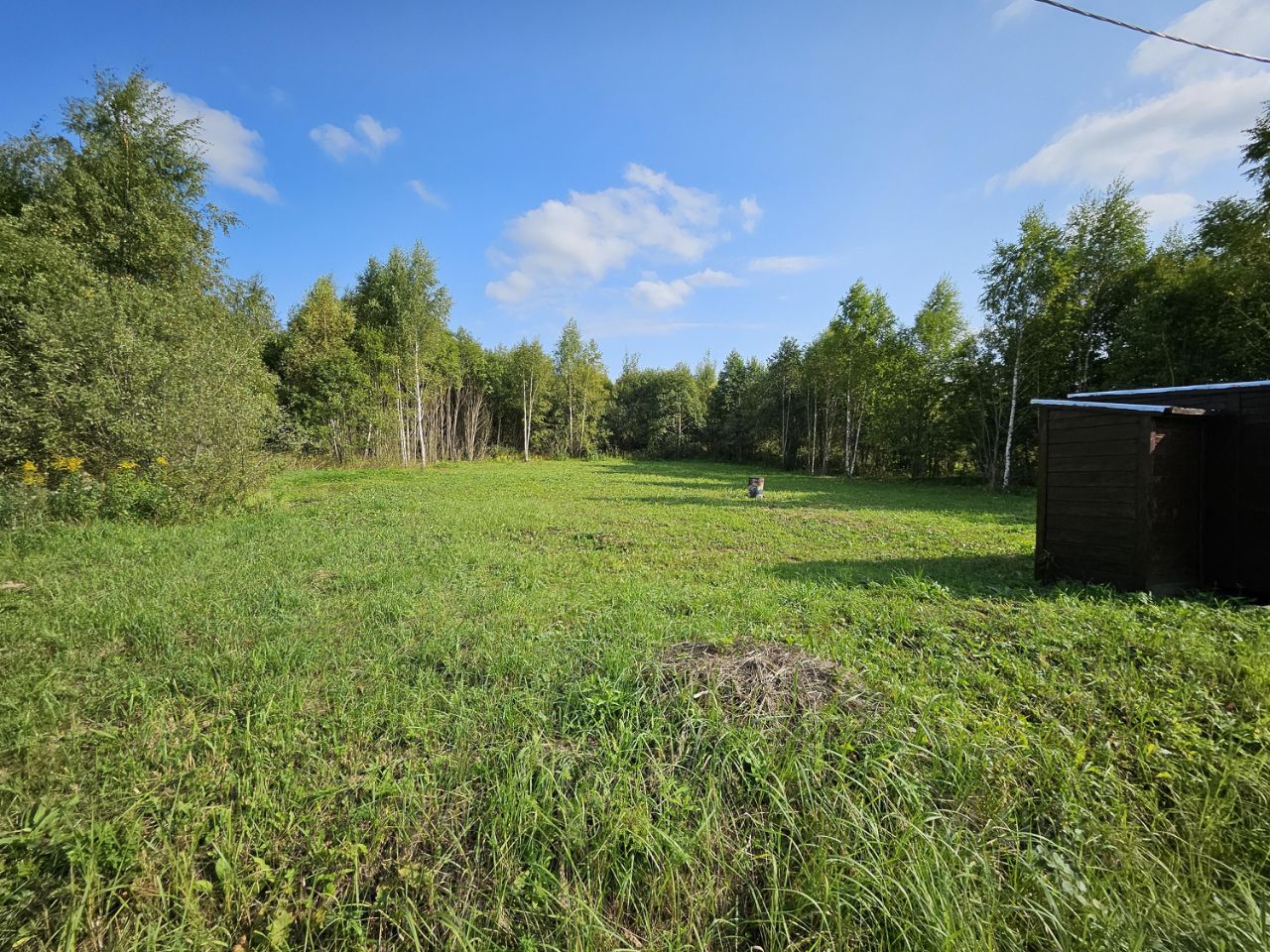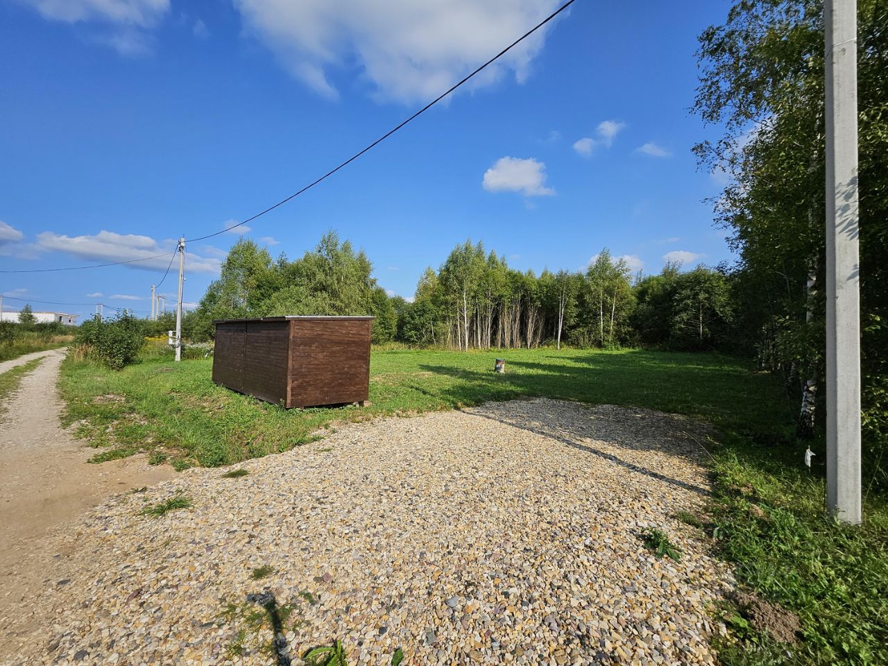 Участок ровный, сухой — строить легко. Электричество 15 кВт уже есть, газ проходит рядом — подключайся.