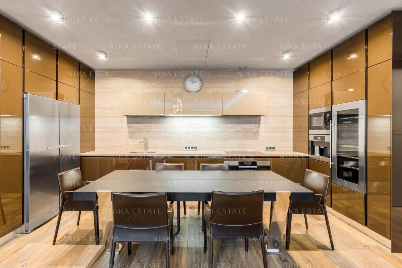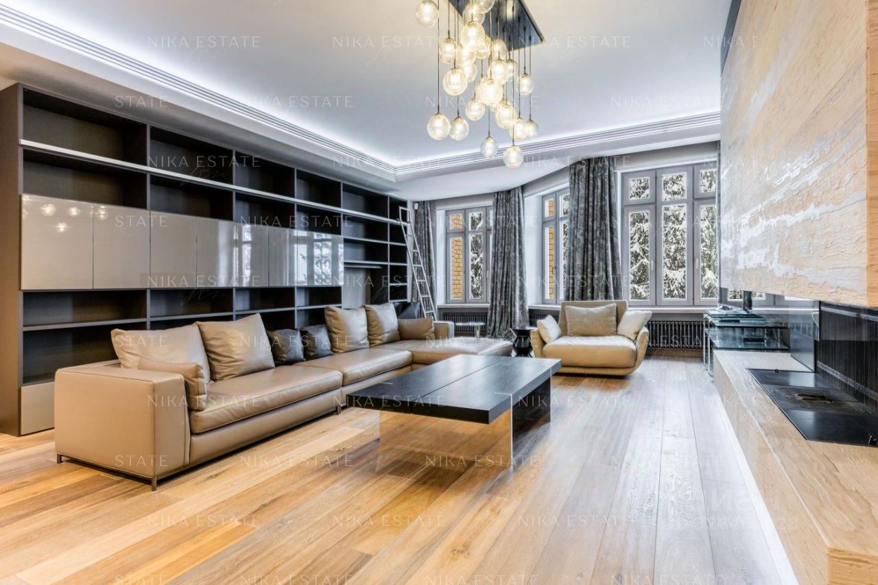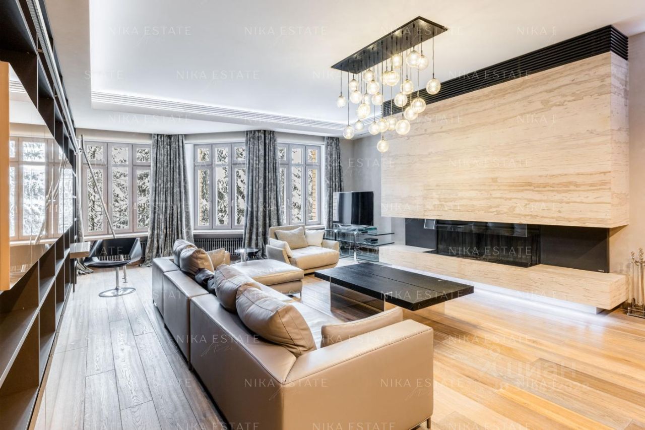 Интерьер выполнен в стиле загородного дома. Центром просторной гостиной-кухни-столовой является большой дровяной камин (Boley), отделанный камнем Wood stone с текстурой, напоминающей древесину. В ванной комнате использован светло-бежевый мрамор, в гостевом санузле - камень под венге с декоративной штукатуркой, создающей эффект шелка. Панно с внутренней подсветкой наполняет пространство мягким светом. Большое зеркало, хромированные аксессуары и лакированная дверь добавляют игру бликов на стенах. Сантехника от Villeroy*Boch, DornBracht и Margoroli. Системы вентиляции и кондиционирования скрыты в потолках. Квартира оборудована современной бытовой техникой от Miele, Liebherr и Kuppersbusch. Территория комплекса охраняется, ведется круглосуточное видеонаблюдение. На территории находится оздоровительный центр. Квартира продается полностью меблированной и оснащенной техникой, готовой как для собственного проживания, так и для сдачи в аренду. Номер в базе: J27276