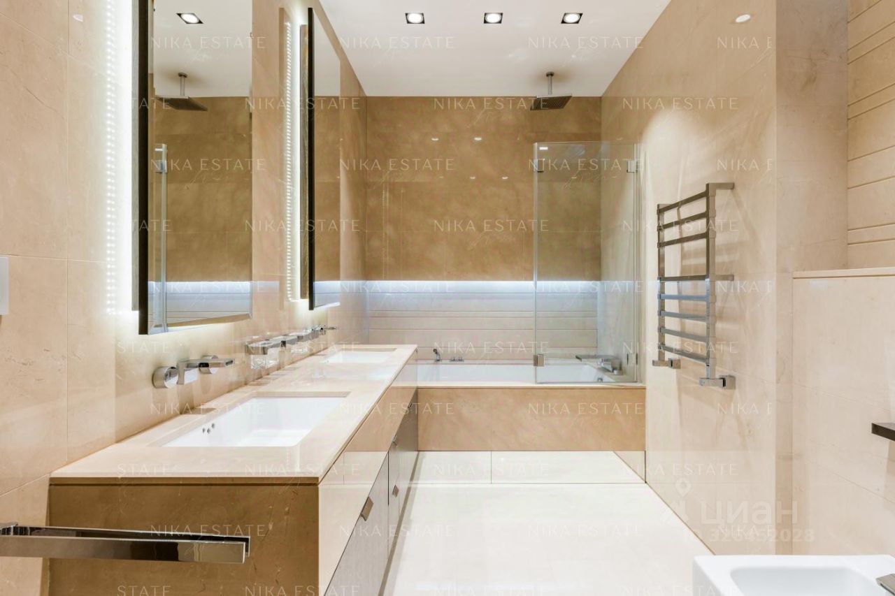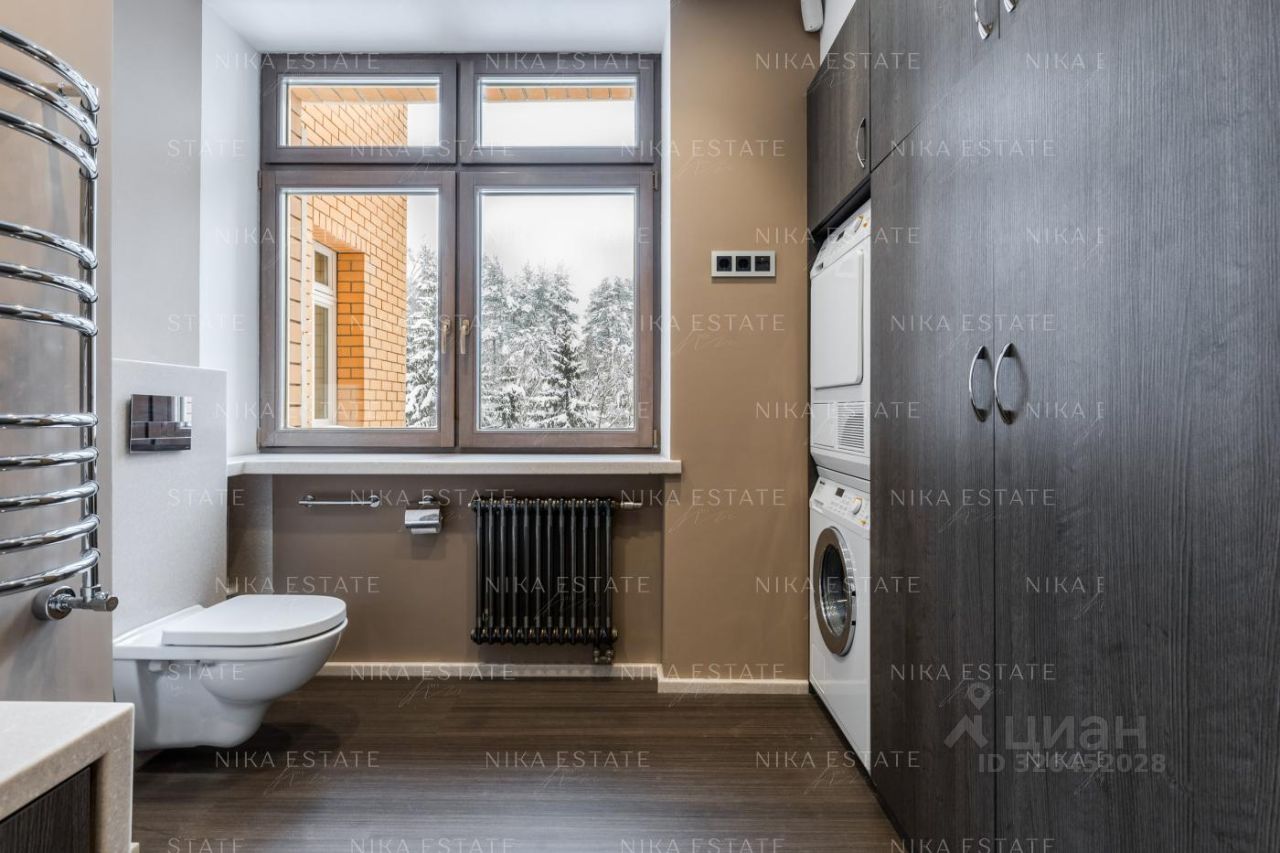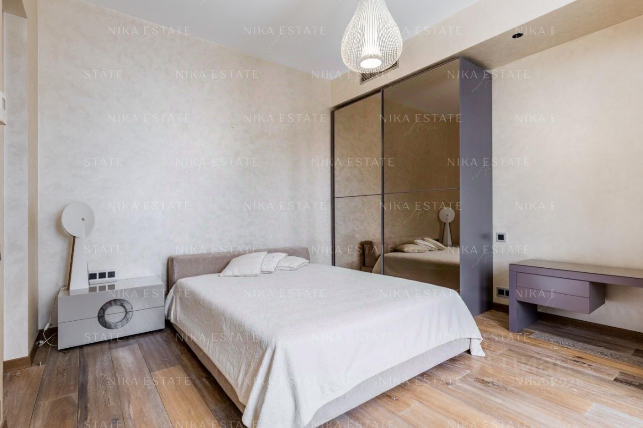 Интерьер выполнен в стиле загородного дома. Центром просторной гостиной-кухни-столовой является большой дровяной камин (Boley), отделанный камнем Wood stone с текстурой, напоминающей древесину. В ванной комнате использован светло-бежевый мрамор, в гостевом санузле - камень под венге с декоративной штукатуркой, создающей эффект шелка. Панно с внутренней подсветкой наполняет пространство мягким светом. Большое зеркало, хромированные аксессуары и лакированная дверь добавляют игру бликов на стенах. Сантехника от Villeroy*Boch, DornBracht и Margoroli. Системы вентиляции и кондиционирования скрыты в потолках. Квартира оборудована современной бытовой техникой от Miele, Liebherr и Kuppersbusch. Территория комплекса охраняется, ведется круглосуточное видеонаблюдение. На территории находится оздоровительный центр. Квартира продается полностью меблированной и оснащенной техникой, готовой как для собственного проживания, так и для сдачи в аренду. Номер в базе: J27276