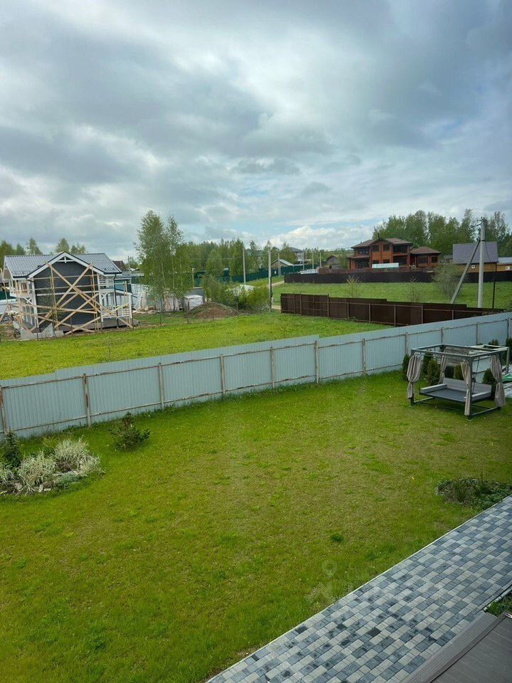 Участок площадью 15 соток, газон, брусчатка, гараж из пеноблока на территории участка.