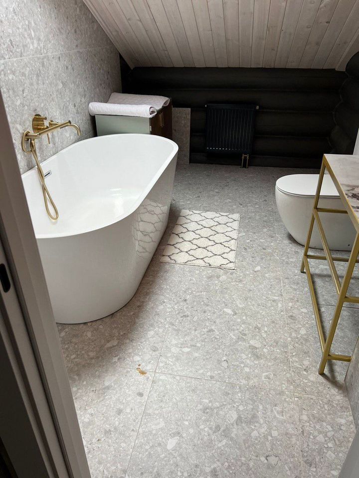 Дом оснащен электрическим отоплением, водоснабжение осуществляется через скважину, а канализация — септик из бетонных колец.