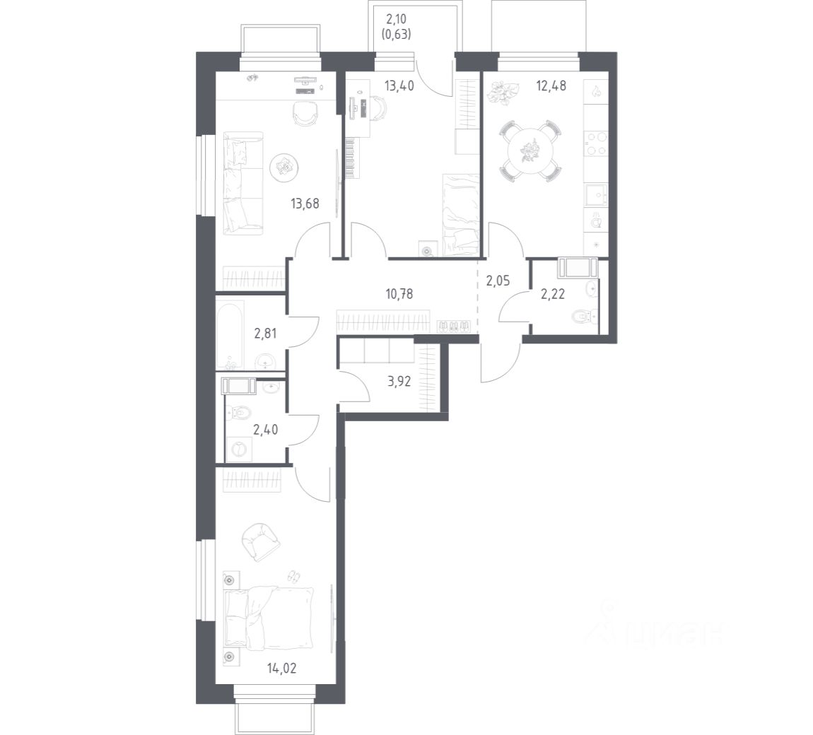 Строим кварталы для жизни с заботой о будущем. Предлагается 3-комнатная квартира комфорт-класса площадью 77,1 кв.м в корпусе 6.2 на 14-м этаже, в жилом комплексе ''Томилино Парк''.